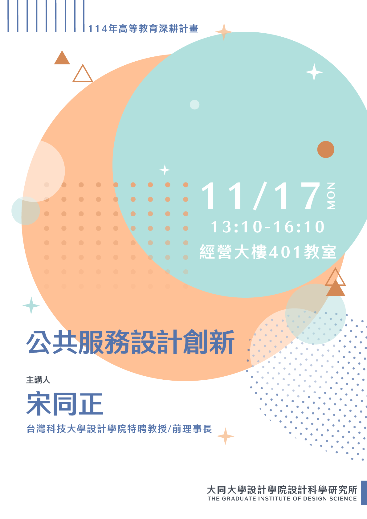 -主講人:台灣科技大學設計學院特聘教授 / 前理事長 宋同正